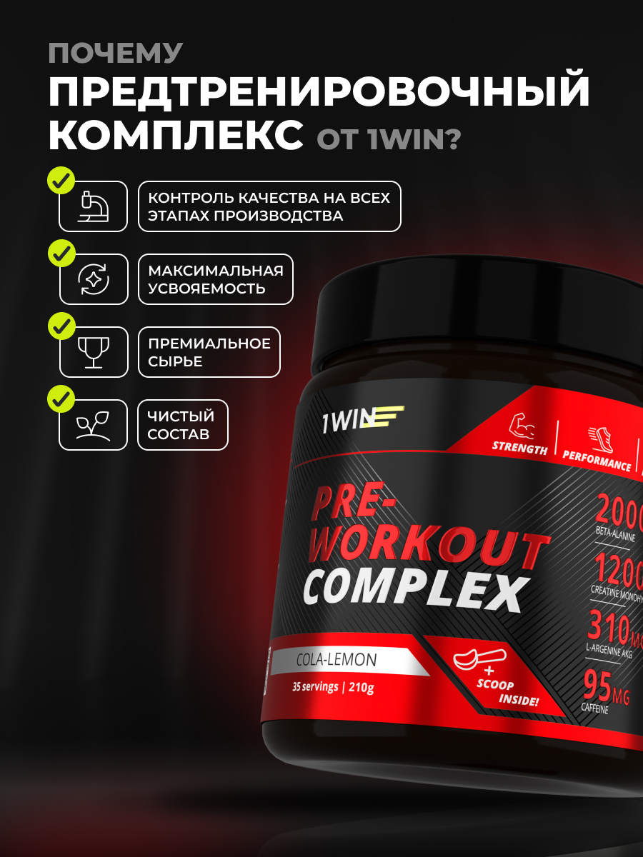 • 1WIN / Предтренировочный комплекс. Pre-workout, Вкус Кола-Лимон, 35 порций