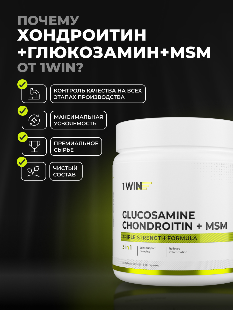 1WIN / Глюкозамин + Хондроитин + MSM, 180 капсул