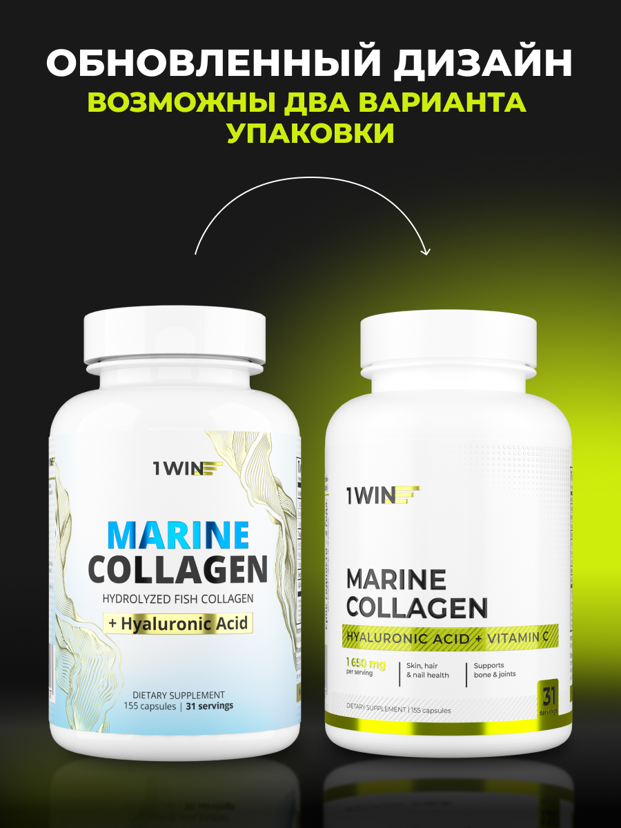 1WIN / Коллаген с витамином С и гиалуроновой кислотой, морской 2 типа, 155 капсул