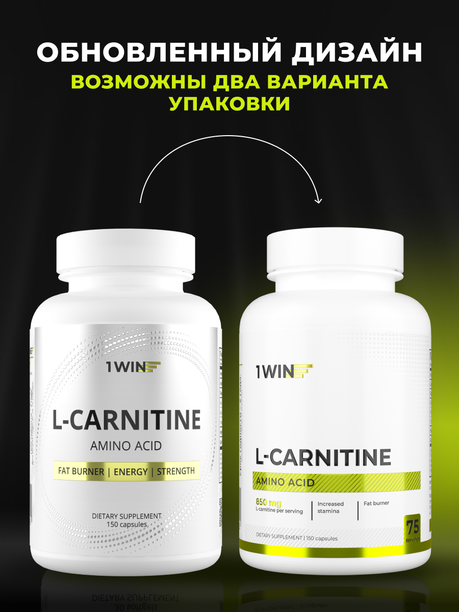 1WIN / L-карнитин / L-carnitine / Похудение /Сушка/ Жиросжигатель, 150 капсул