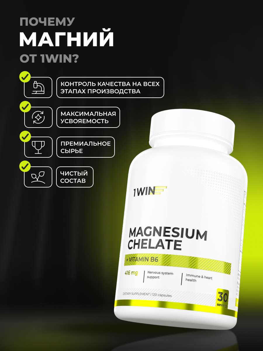 1WIN / Магния бисглицинат+В6, 120 капсул