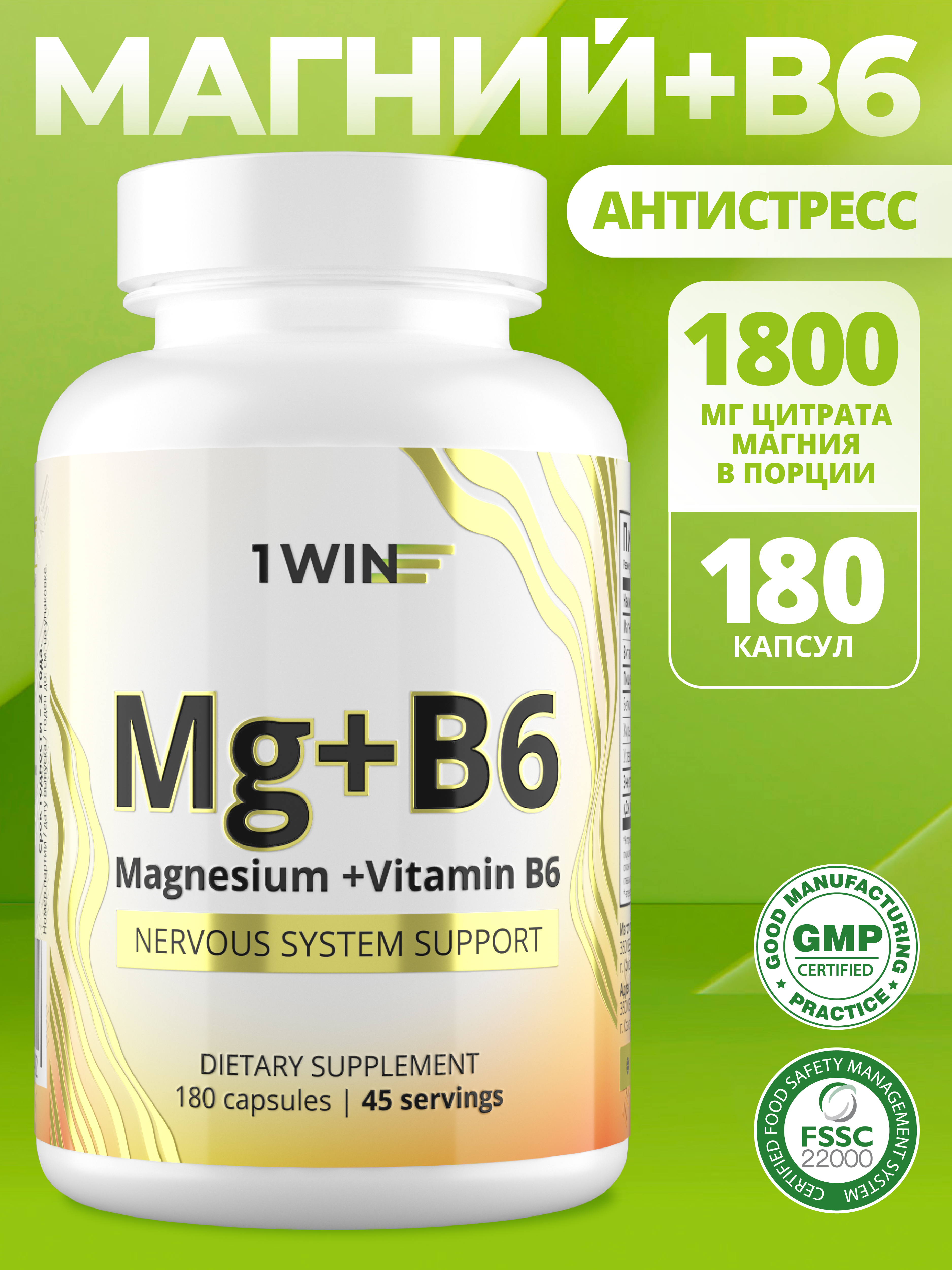 1WIN / Магния цитрат с витамином B6, 180 капсул