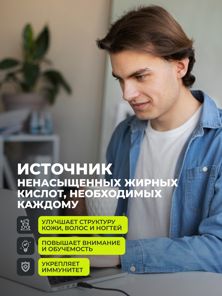 Омега 3 главный источник полиненасыщенных жирных кислот. Не синтезируется в организме, поступает вместе с едой. Fish oil включает эйкозапентаеновую и докозагексаеновую кислоты, которые нормализуют работу мозга и обмен веществ, улучшают кровообращение, восстанавливают функции нервной системы. ПНЖК оказывают омолаживающий эффект, замедляя процесс старения, благоприятно влияют на состояние кожи, волос и ногтей. Рыбий жир укрепляет иммунитет и улучшает общее самочувствие.