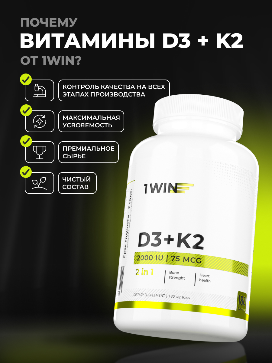 1WIN / Витамин К2+Д3 2000 МЕ, 180 капсул