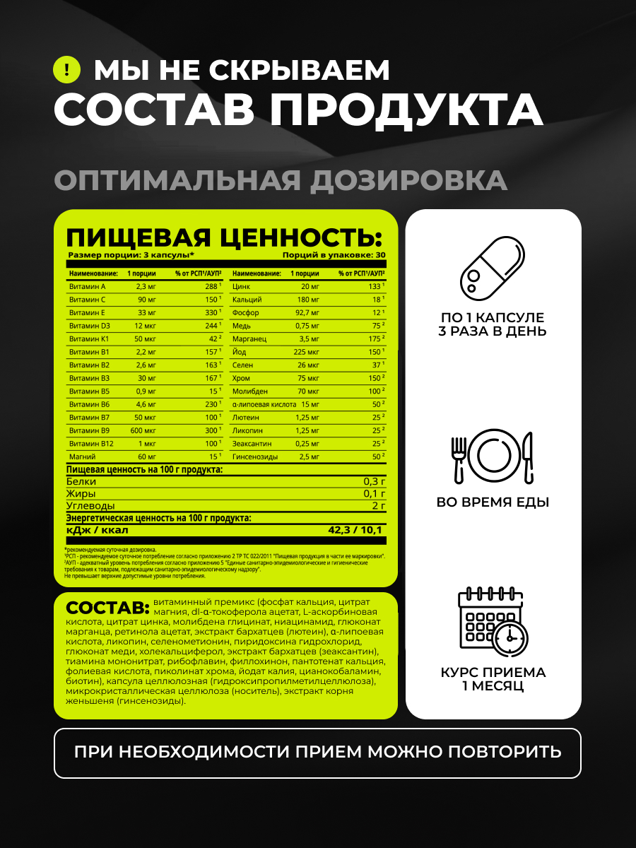 Мультивитамины для мужчин и женщин сертифицированы по стандартам GMP, ISO.