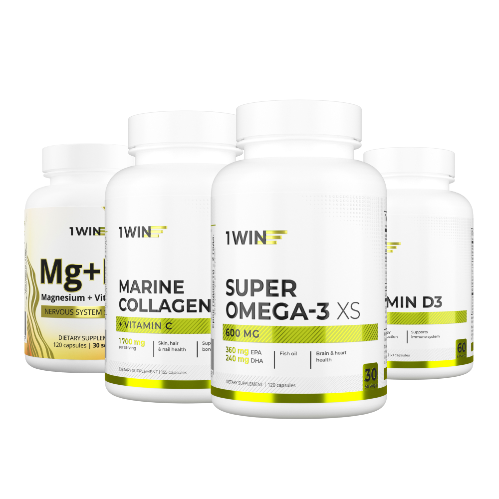 1WIN / Набор витаминов, Омега-3, Морской коллаген, Магний+В6, Витамин D3