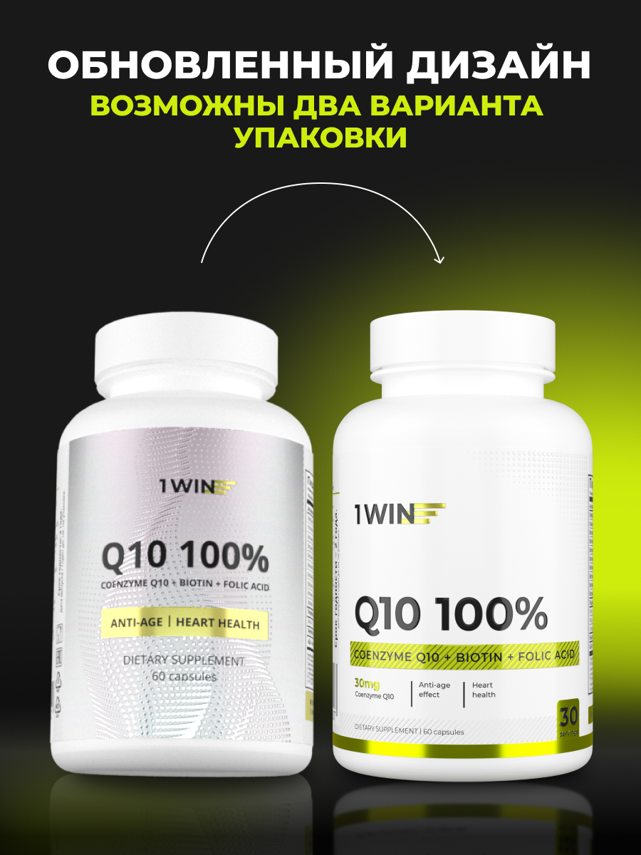 1WIN /Аnti-age Контрол тайм Q10 100% комплекс с Коэнзим Q10, Биотином, Фолиевой кислотой, Омега-9 и Кверцетином, курс на 30 дней