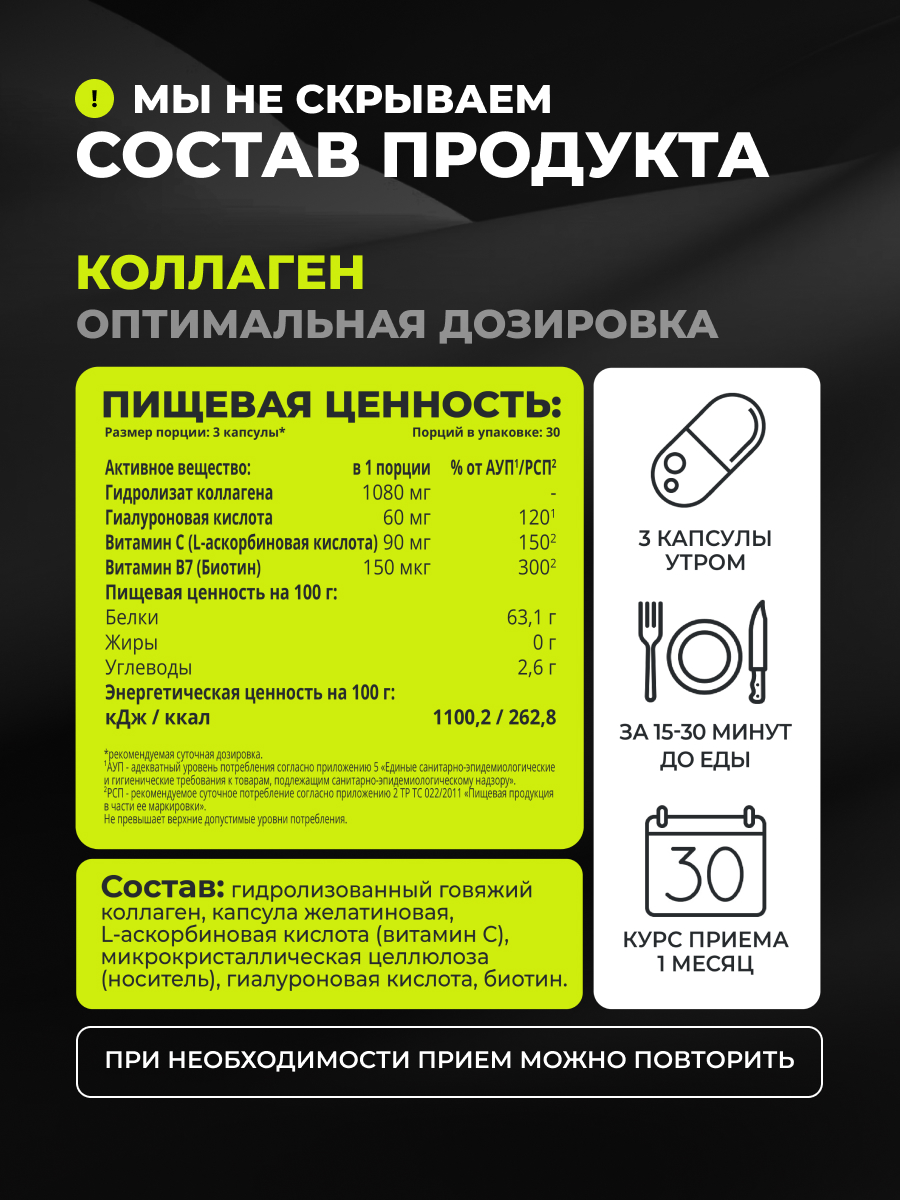 Коллаген с Биотином и Гиалуроновой Кислотой в капсулах