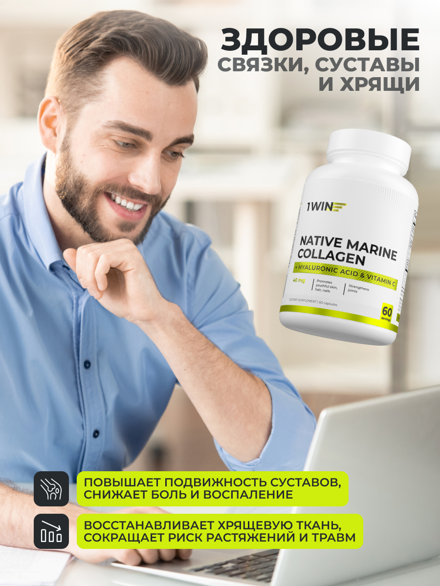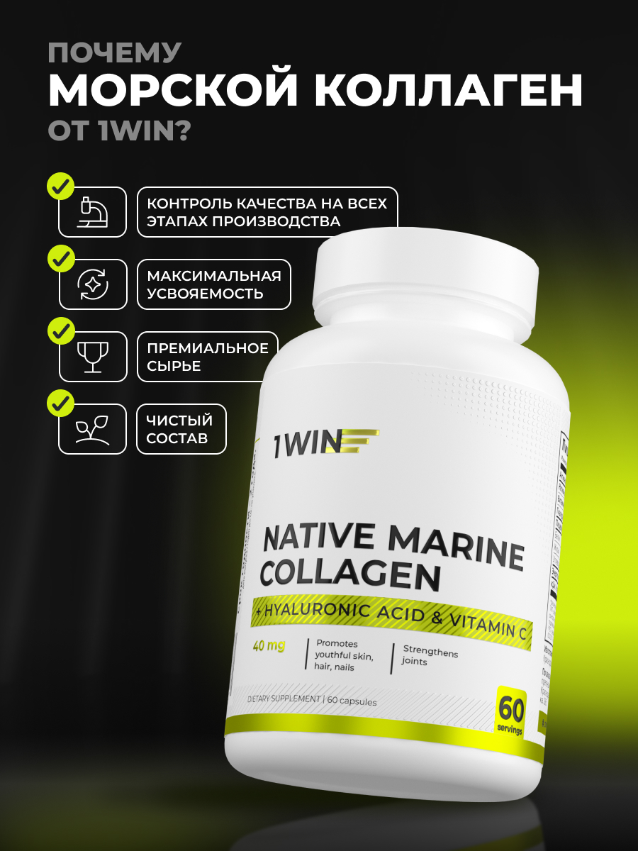 1WIN / Нативный морской Коллаген + Гиалуроновая кислота + Витамин С, 60 капсул