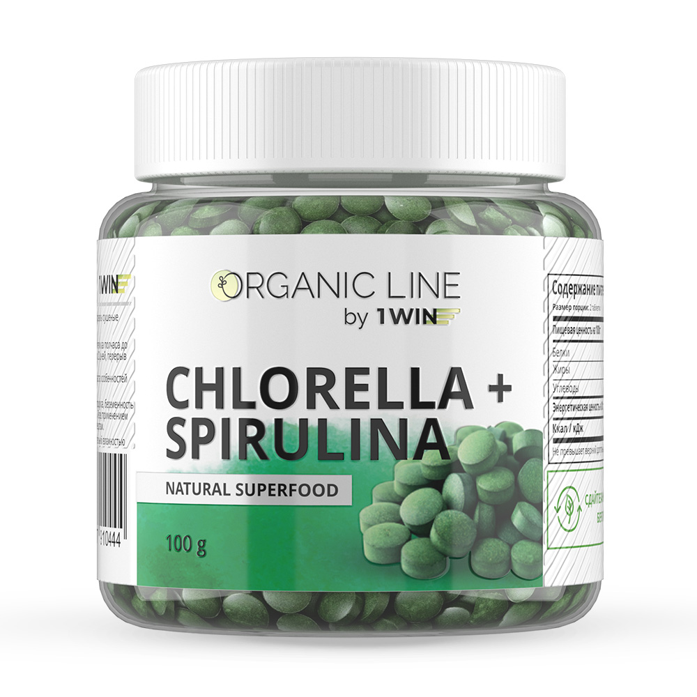 1WIN / Хлорелла + Спирулина натуральная, прессованная в таблетках, Суперфуд, 100 грамм