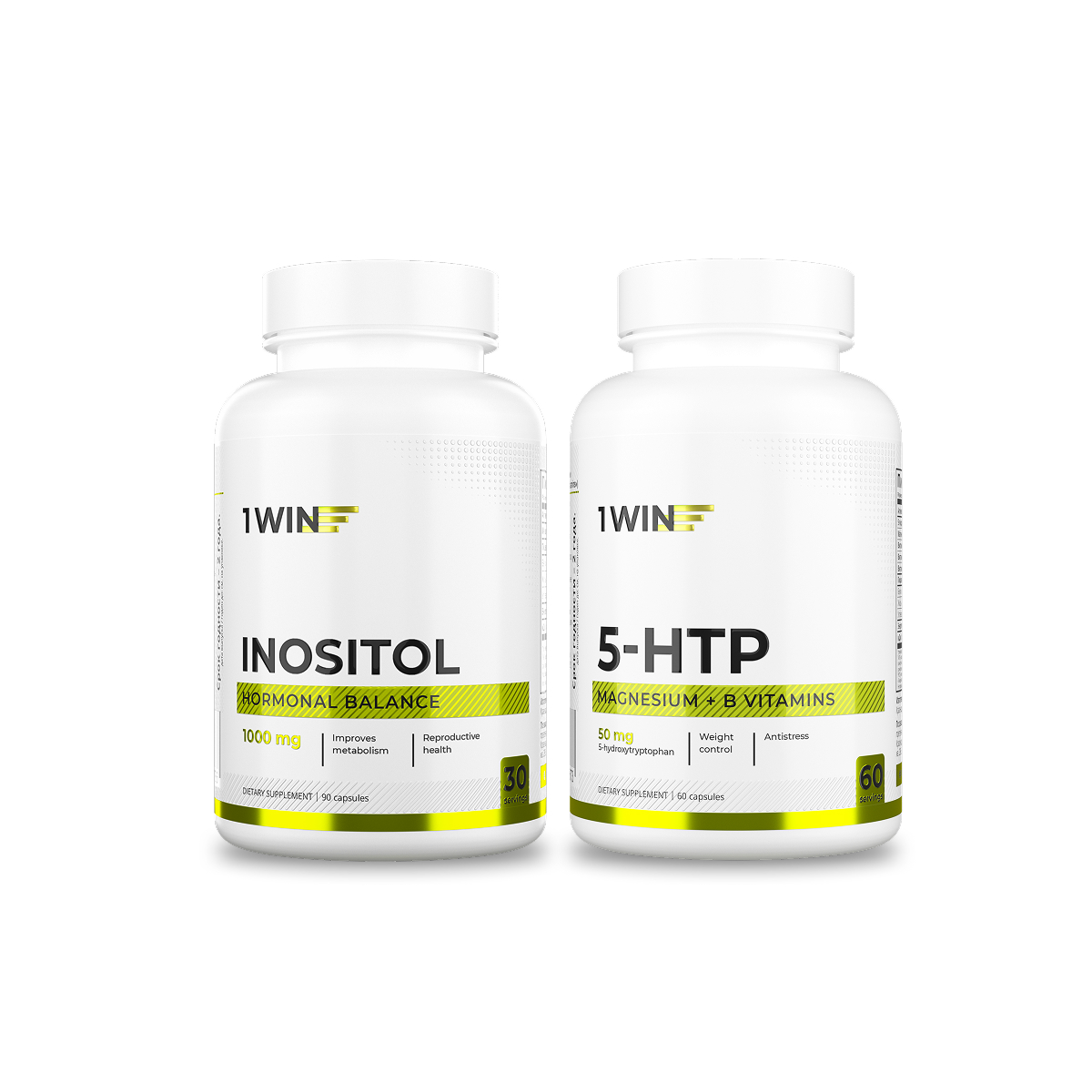 1WIN / Набор витаминов. Инозитол 90 капсул + 5HTP с магнием и витаминами группы В 60 капсул