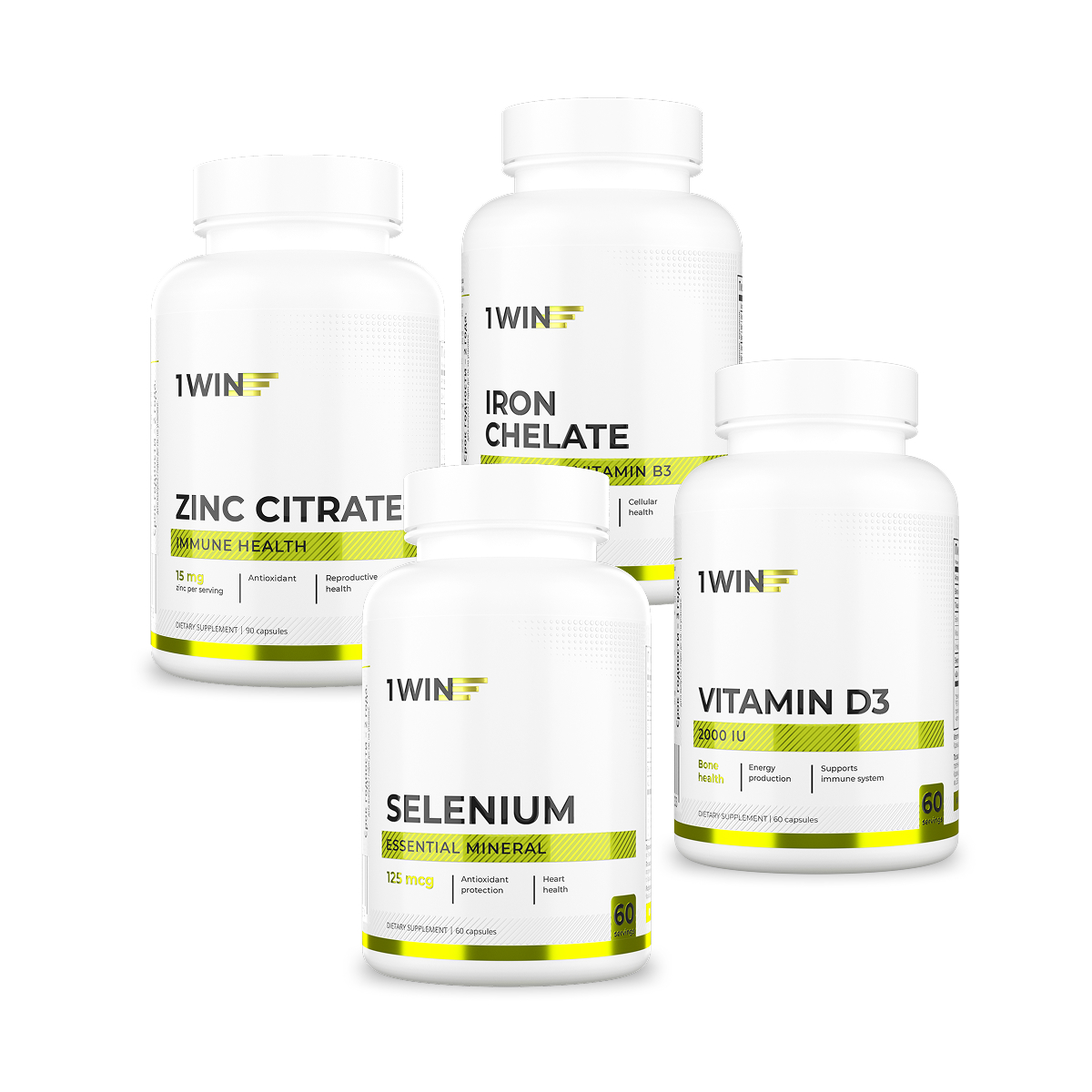 1WIN / Набор витаминов. Цинк 90 капсул + Селен 60 капсул + Железо 60 капсул + подарок Витамин D3 2000 МЕ 60 капсул