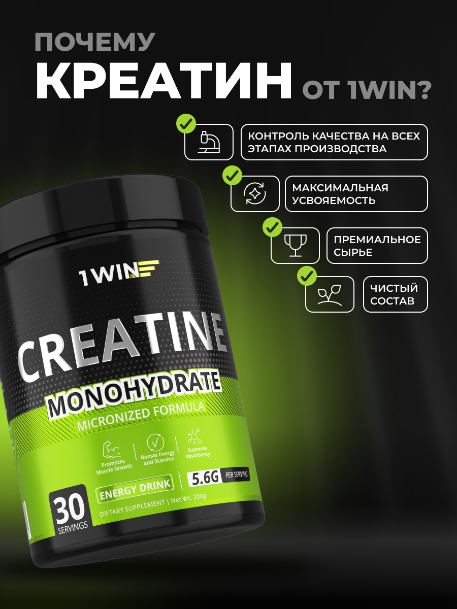 1WIN / Креатин моногидрат Вкус Энергетик 30 порций, 200г